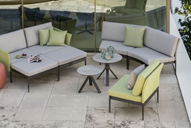 Das Besondere dieser Modul-Lounge sind die ultra-bequemen wasserdichten Kissen, die am perforierten Gitter-Rahmen befestigt werden und somit nicht verrutschen können. Komfort, Variabilität und Funkt...