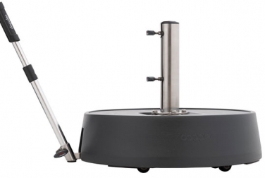 Die 4 Rollen und der teleskopierbare Griff ermöglichen einen leichten Transport des Sockels. Durch die mitgelieferten Reduziereinsätze können Schirme mit einem Rohrdurchmesser von 32 – 60 mm ver...