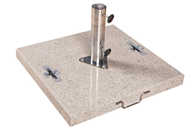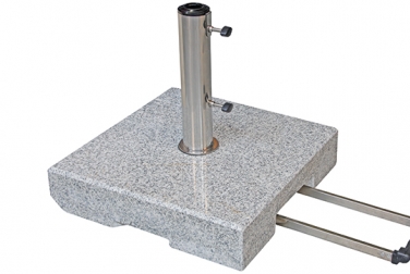 Alternative Möglichkeit zur Befestigung eines Pendelschirmes. Die rollbare Granitplatte wiegt 140kg, hat 4 Räder an der Unterseite (2 feststellbar).