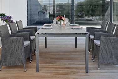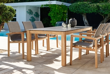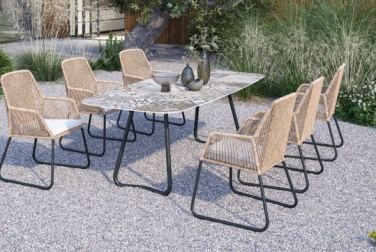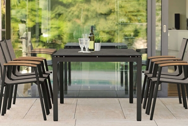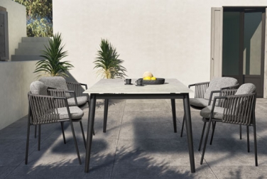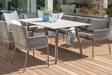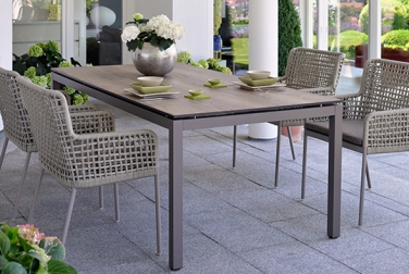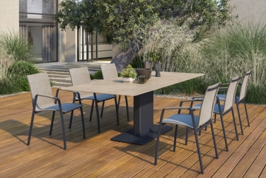 Sie suchen eine Speisegarnitur mit dem gewissen Extra? Dann lassen Sie sich von “Jura” begeistern. Für das exklusive Outdoor-Möbel kombiniert die Firma SIT eine Keramik oder Dektonplatte m...