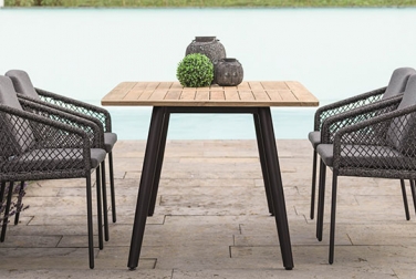 Die Leah Speisegarnitur bestehend aus den neuen Stühlen mit hochwertiger Sythetikfaser und dem stabilen Speisetisch aus Teakholz mit einer Tischplatte aus Dekton machen diese Serie zu Ihrer Lieblings...