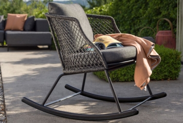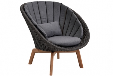 Der stylische Loungesessel „Peacock“ ist ein besonders komfortabler Designer-Sessel. Die großzügige, schalenförmige Rückenlehne aus dunkelgrauem Seil ist ein optisches Highlight und bietet ih...