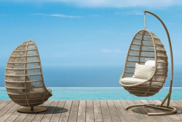 Der eiförmige Stuhl mit Drehfuß aus der Panama-Kollektion ist ein Einrichtungsaccessoire, das allein schon ein starkes Gefühl von Eleganz und Komfort in Ihrem Wohnzimmer im Freien vermittelt. Die m...