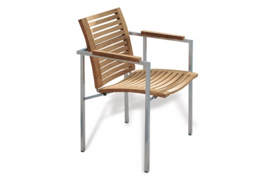 Moderner, überaus bequemer und robust konstruierter Stapelstuhl, der mit interessanten Details aufwartet ( Edelstahlringe zwischen Armlehne, Bein und Rückenlehne). Der Stuhl verbindet modernen Look ...