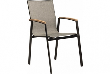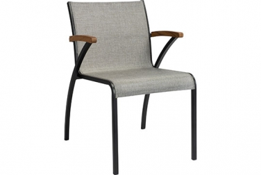 New Top - ist ein hochwertiger Aluminium Stuhl mit Teakarmlehnen ! Das Aluminiumgestell in der neuen Farbe schwarz matt zeichnet sich durch hochwertige Beständigkeit und Pflegeleichtigkeit aus. Die ...