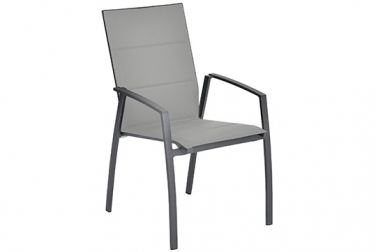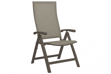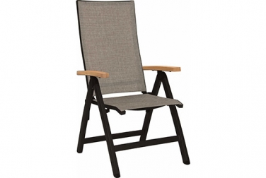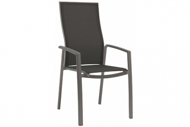 Evoee – eine raffinierte Kombination aus outdoortauglichen Materialien und hohem Komfort, dank einer extra hohen, leicht schwingenden Rückenlehne. Aluminiumarmlehnen.