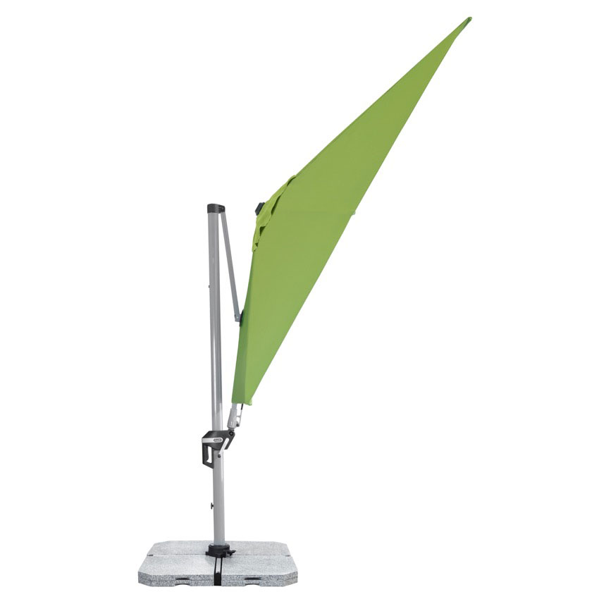 Der Ampelschirm Active 350×260 cm hinterlässt dank seiner Vielseitigkeit in Hinblick auf die verschiedenen Einstellungsmöglichkeiten des Schirmdachs sowie das hochwertige und massive Aluminium-Gestell einen mehr als positiven Eindruck. Durch das rechteckige Dach ist der Schirm besonders für eine Beschattung der Gartengarnitur geeignet. Außerdem trotzt der Pendelschirm zu jeder Uhrzeit der Sonne, da er sich um 360° drehen, beidseitig axial schwenken und schräg nach hinten stellen lässt und somit optimal dem Sonnenstand angepasst werden kann. Der regenabweisende Stoff aus Polyestergewebe mit Lichtschutzfaktor 50+ rundet diesen universalen Ampelschirm zusätzlich ab.