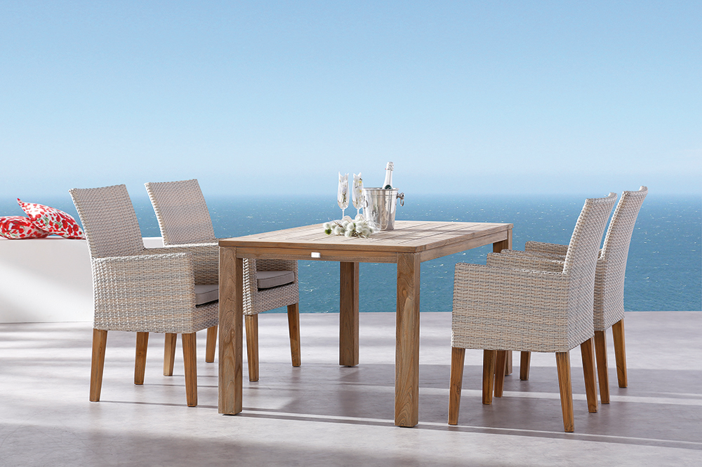 Durch die ergonomische Formgebung, die bequemen Armlehnen, die hohe Rückenlehne und die Tiefe der Sitzfläche ist der Stuhl besonders komfortabel. Das von Hand geflochtene Geflecht besticht durch seine natürliche Struktur und Optik. Die Stuhlbeine sind aus hochwertigem Teakholz gefertigt.