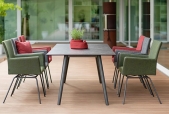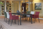 Der Artus Barstuhl gleicht in seiner Optik und Haptik Innenmöbeln und ist kombiniert mit den notwendigen Eigenschaften für den dauerhaften Einsatz im Außenbereich geeignet. Der melierte Stoff gibt dem Sessel eine zusätzliche Eleganz.