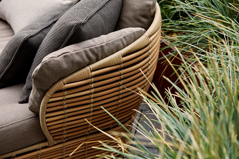 Basket ist ein geräumiges und komfortables Sofa, entworfen von Søren Rose Studio. Basket hat ein für klassische Korbmöbel charakteristisches Design, aufgrund der soliden Materialien von Cane-line können Sie es jedoch ruhig mit hinaus in den Garten nehmen. Basket besteht aus pulverlackiertem Stahl mit dem witterungsbeständigen und soliden Cane-line Weave® in der rattanähnlichen Farbe, die dem Sofa einen einladenden Naturlook verleiht. Die Polster verfügen über das Cane-line QuickDry & AirFlow-System, das für guten Komfort sorgt und sicherstellt, dass Ihre Polster nach einem Regenschauer schnell wieder trocknen. Basket bietet mit dem tiefen Sitzpolster, das zu Entspannung und Gemütlichkeit einlädt, ausreichend Platz für Sie und Ihre Lieben.