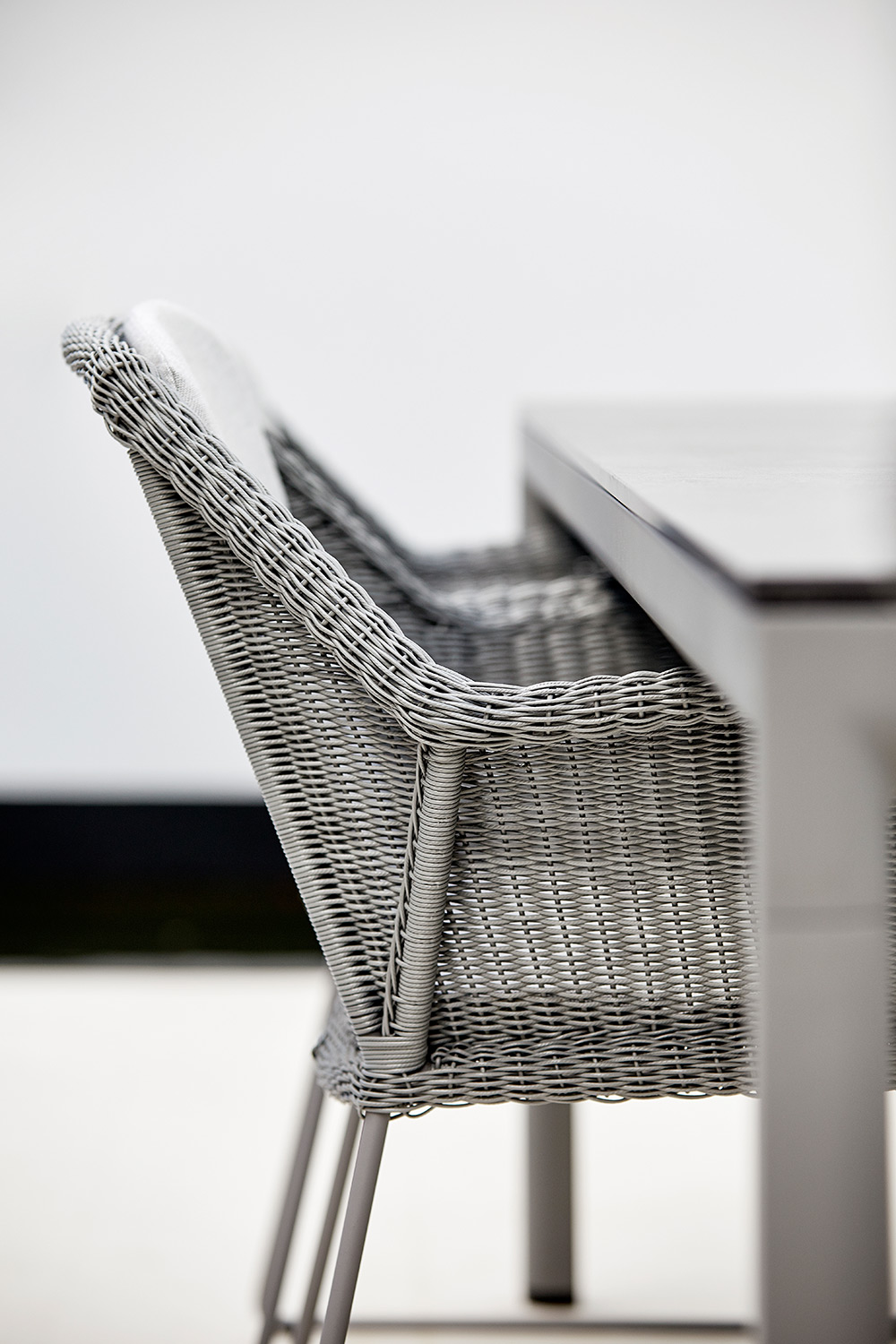 Der elegante Stuhl ist auf einem klassischen Stahlrahmen geflochten. Mit seinem Flechtwerk und dem filigran wirkenden Gestell erinnert Breeze an die sechziger Jahre. Der Breeze Stuhl ist aus der einzigartigen Cane-line Faser handgeflochten, die den Gartenstuhl witterungsbeständig macht und ermöglicht, dass Breeze das ganze Jahr über draussen stehen bleiben kann.