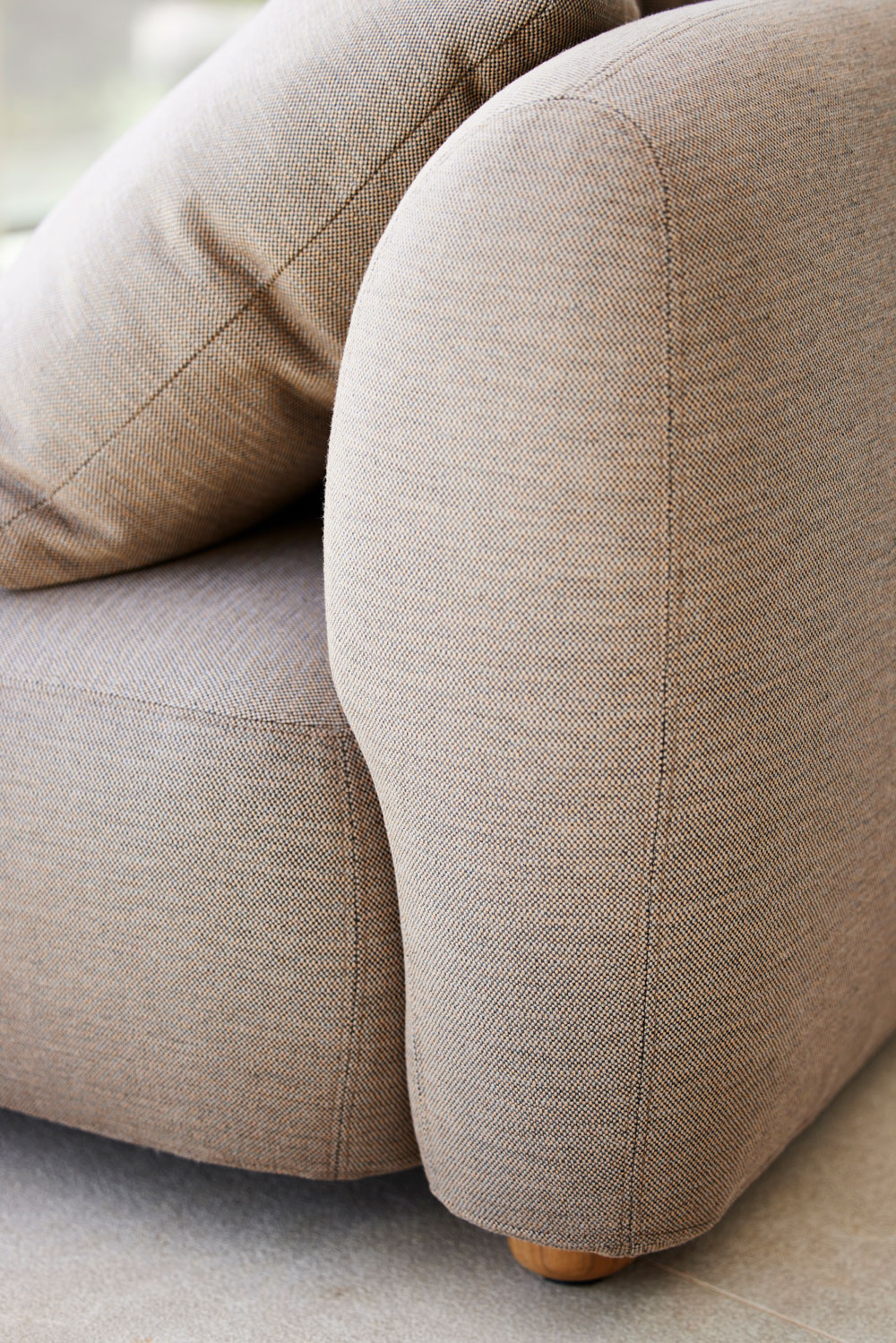 Capture sind komfortable und ungezwungene Loungemöbel für Ihren Außenbereich, mit kultigen weichen Formen. Eine perfekte Balance zwischen entspannter Gemütlichkeit und einem modernen kurvigen Designausdruck. Capture ist ein voll gepolstertes Modulsofa, das an eine Lounge für Innenräume erinnert, gefertigt aus strapazierfähigem und witterungsbeständigem Cane-line AirTouch-Stoff. Das Sofa hat eine niedrige Sitzhöhe mit idealer Tiefe und feste Sitzpolster für mehr Komfort. Gemeinsam sorgen diese Merkmale für einen angenehmen Ort für ungezwungene Gespräche und Beisammensein. Lassen Sie sich vom Moment einfangen und entspannen Sie in einer ruhigen Oase.