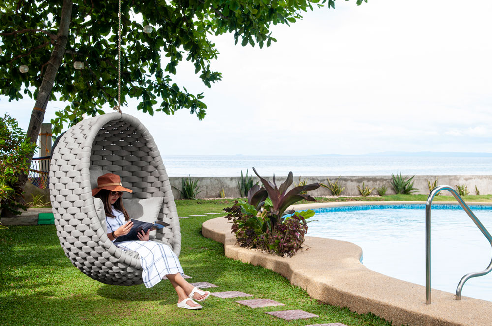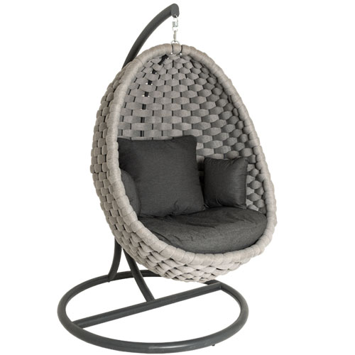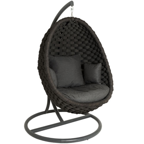 Der Weichgummikern ist mit einer Seilhülle umzogen. Da Gummi keine Nässe aufnehmen kann, muss nur die sichtbare Seil-Hülle aus Olefin trocknen. Die Kissen haben eine wasserdichte PE-Beschichtung auf der Unterseite des Stoffes und werden daher nur auf der Oberfläche nass.