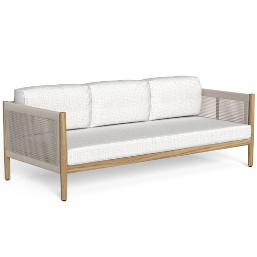 Die Dolcevita Lounge ist eine Hommage an warme Sommerabende. Jedes Detail, vom dichten Seilgeflecht, das die Rückenlehne und Armlehnen charakterisiert, bis hin zu den Teakholzoberflächen soll an die Leichtigkeit der süßesten Jahreszeit erinnern. Eine perfekte Lösung für einen Ruhebereich im Garten mit einem Hauch von Frische. Die große Auswahl an Pastellfarben ermöglicht es Ihnen, dieses Einrichtungselement an jeden offenen Raum anzupassen.