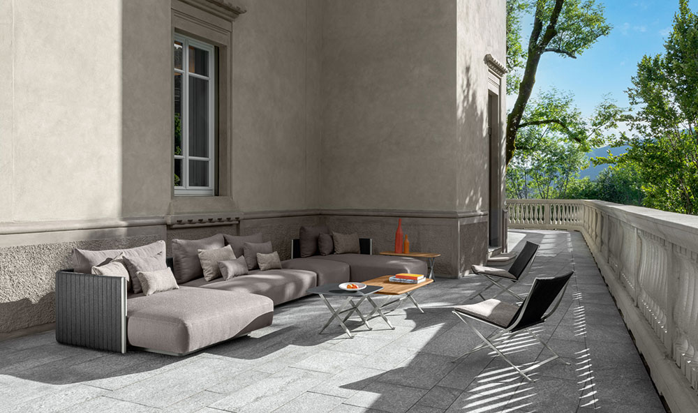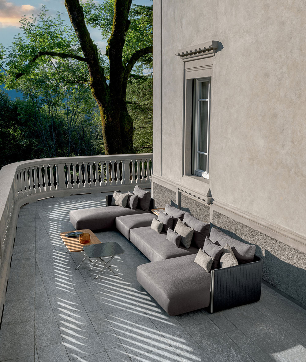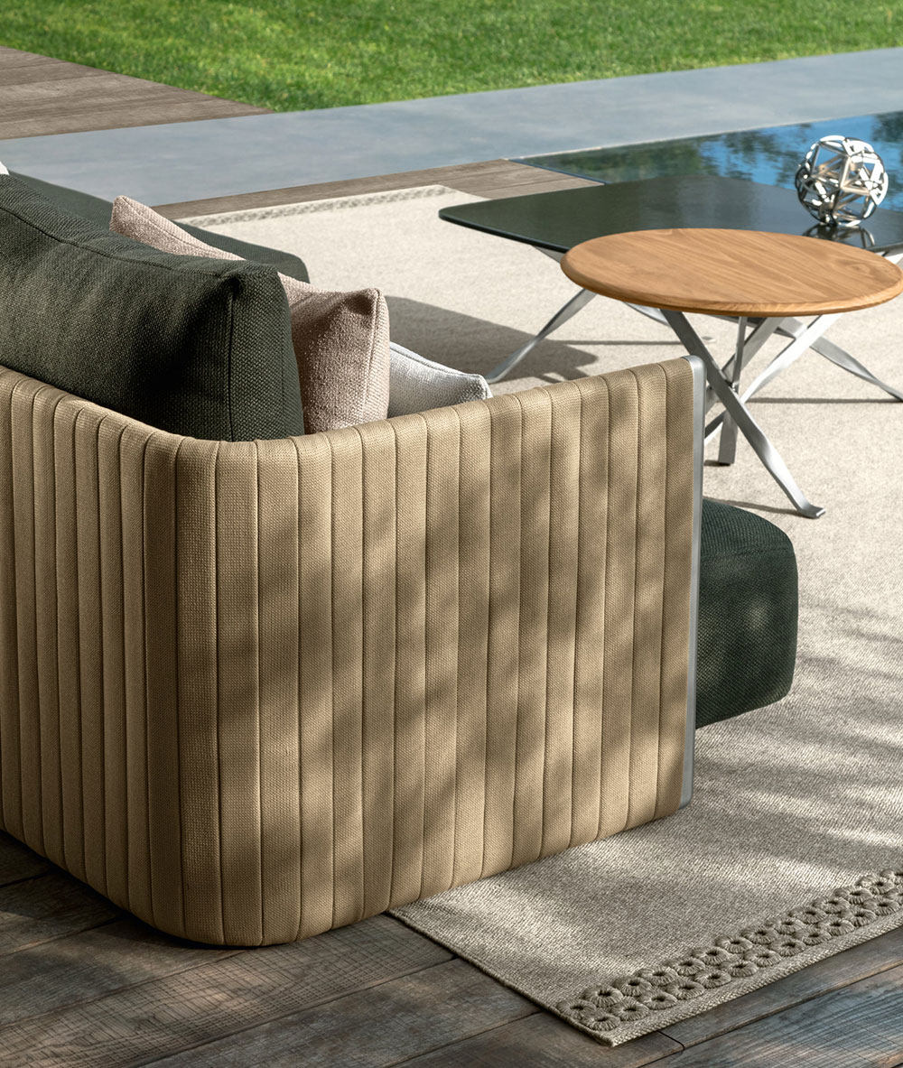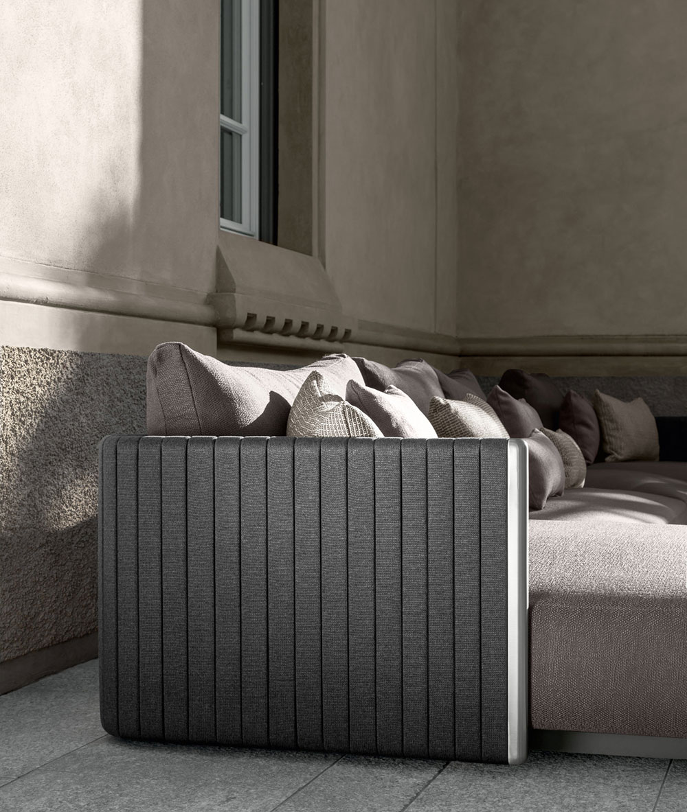 Die vielfältigen Kombinationsmöglichkeiten, die die modulare Lounge George bietet, die sorgfältig ausgewählten Stoffe, die abnehmbaren Kissen und die Wetterbeständigkeit machen dieses Sofa zum perfekten Produkt für die Einrichtung Ihres Außenbereichs.