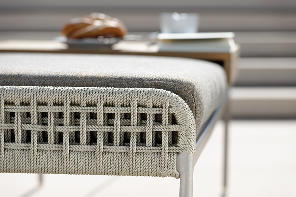 Dank der 100% durchgefärbten Polypropylen-Faser und der Sitzfläche aus Textilen kann die Bank endlich auch im Außenbereich bedenkenlos eingesetzt werden. Ob als Bank, Sofa oder Sessel Greta wird jeden um den Finger wickeln.