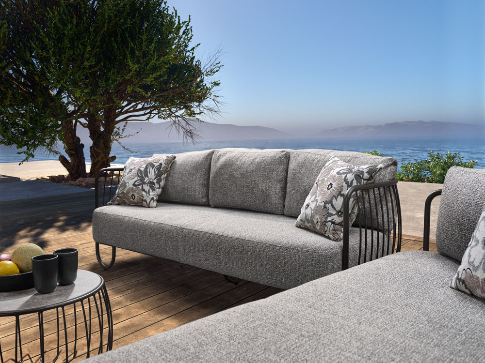 Erwecken Sie Ihre mediterranen Träume zum Leben. Das sand matte Aluminiumgestell und die filigranen Aluminiumstreben der Rückenlehne verleihen ILA eine elegante Note. Die hochwertigen, wetterbeständigen Polster bieten luxotiösen Komfort und laden zum gemütlichen Verweilen ein. Genießen Sie gemeinsame Stunden mit Ihren Liebsten in Ihrem Outdoor-Wohnzimmer.