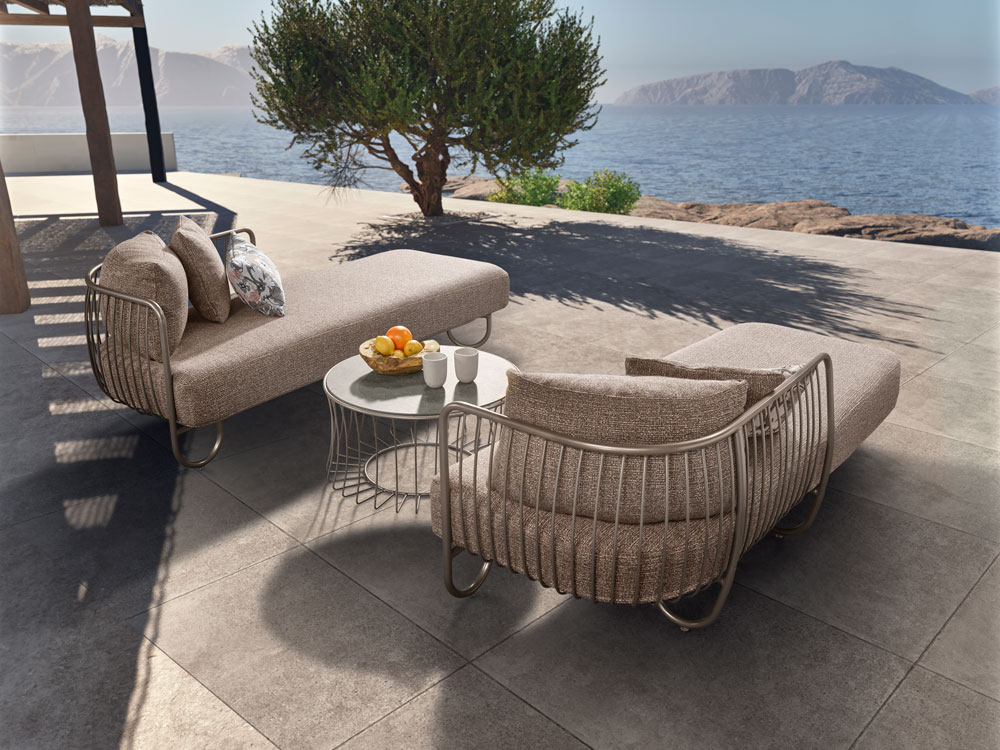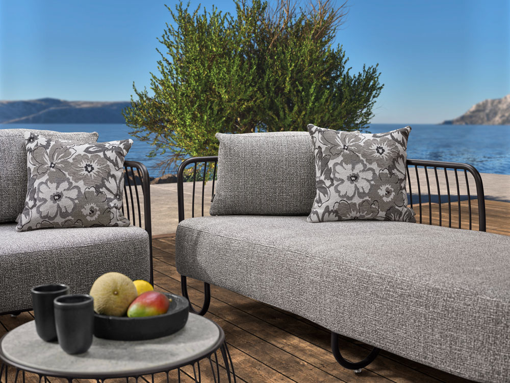 Erwecken Sie Ihre mediterranen Träume zum Leben. Das schwarz matte Aluminiumgestell und die filigranen Aluminiumstreben der Rückenlehne verleihen ILA eine elegante Note. Die hochwertigen, wetterbeständigen Polster bieten luxotiösen Komfort und laden zum gemütlichen Verweilen ein. Genießen Sie gemeinsame Stunden mit Ihren Liebsten in Ihrem Outdoor-Wohnzimmer.
