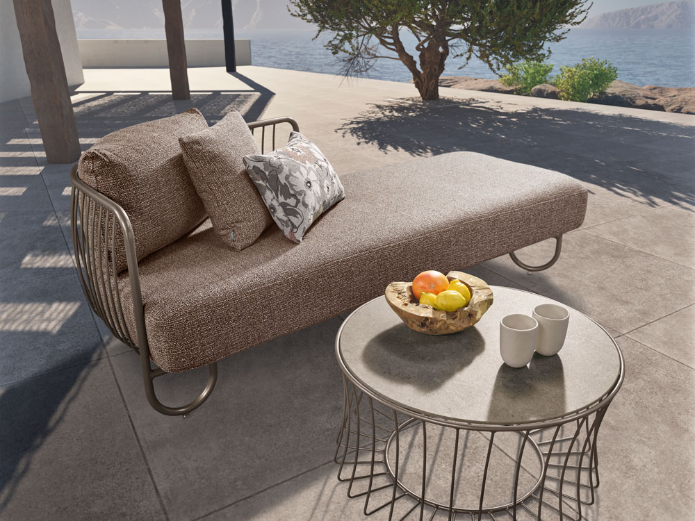 Erwecken Sie Ihre mediterranen Träume zum Leben. Das sand matte Aluminiumgestell und die filigranen Aluminiumstreben der Rückenlehne verleihen ILA eine elegante Note. Die hochwertigen, wetterbeständigen Polster bieten luxotiösen Komfort und laden zum gemütlichen Verweilen ein. Genießen Sie gemeinsame Stunden mit Ihren Liebsten in Ihrem Outdoor-Wohnzimmer. Wahlweise mit Armlehne links oder rechts.