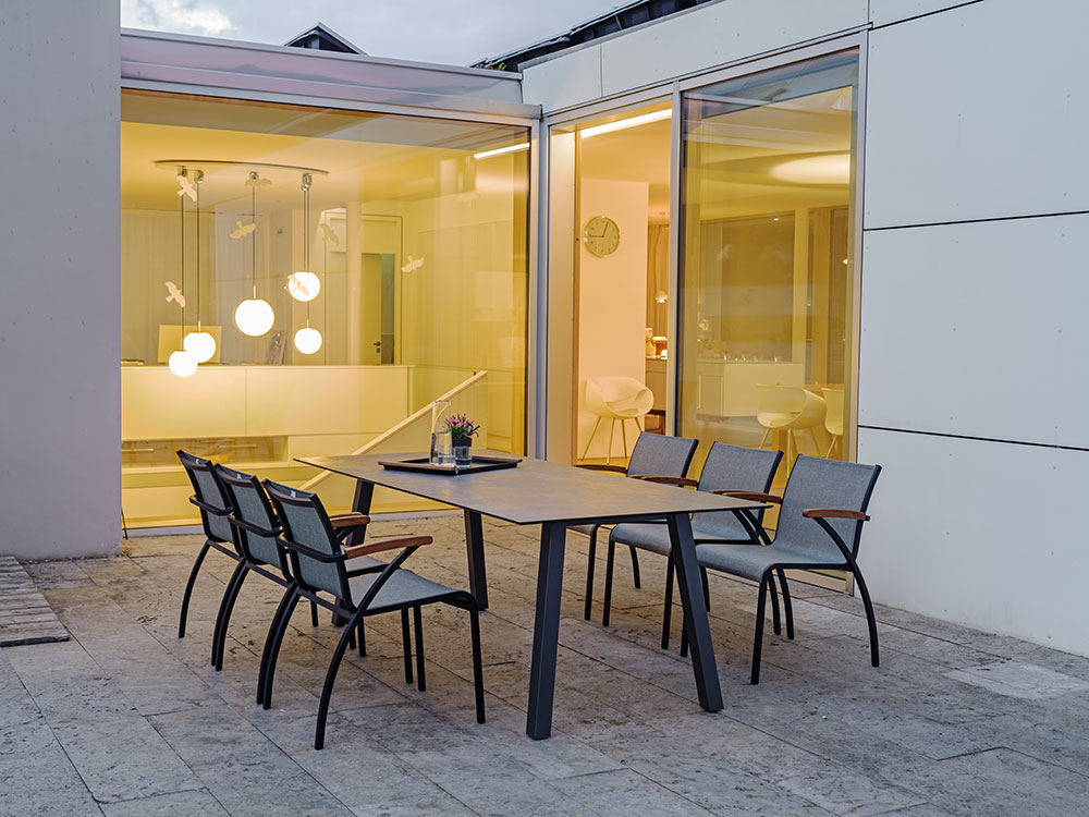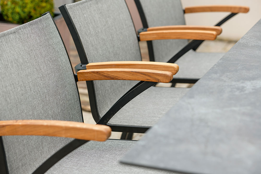 Der außergewöhnliche Bogen des hinteren Beines wird in seiner Verlängerung dynamisch bis zur Armlehne weitergeführt. Veredelt mit Armlehen aus Teak steht Laris – in Kombination mit der abgerundeten Sitzfläche – für ausgesprochen harmonisches Design mit einzigartiger Silhouette.