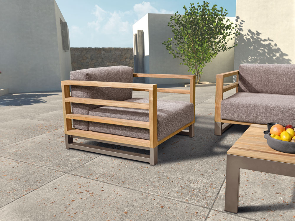Edles Teakholz macht Ihren Garten zum exklusiven Rückzugsort. Die bequemen Sitz-und Rückenpolster in Melange rose laden Sie ein, entspannte Stunden im Freien zu verbringen