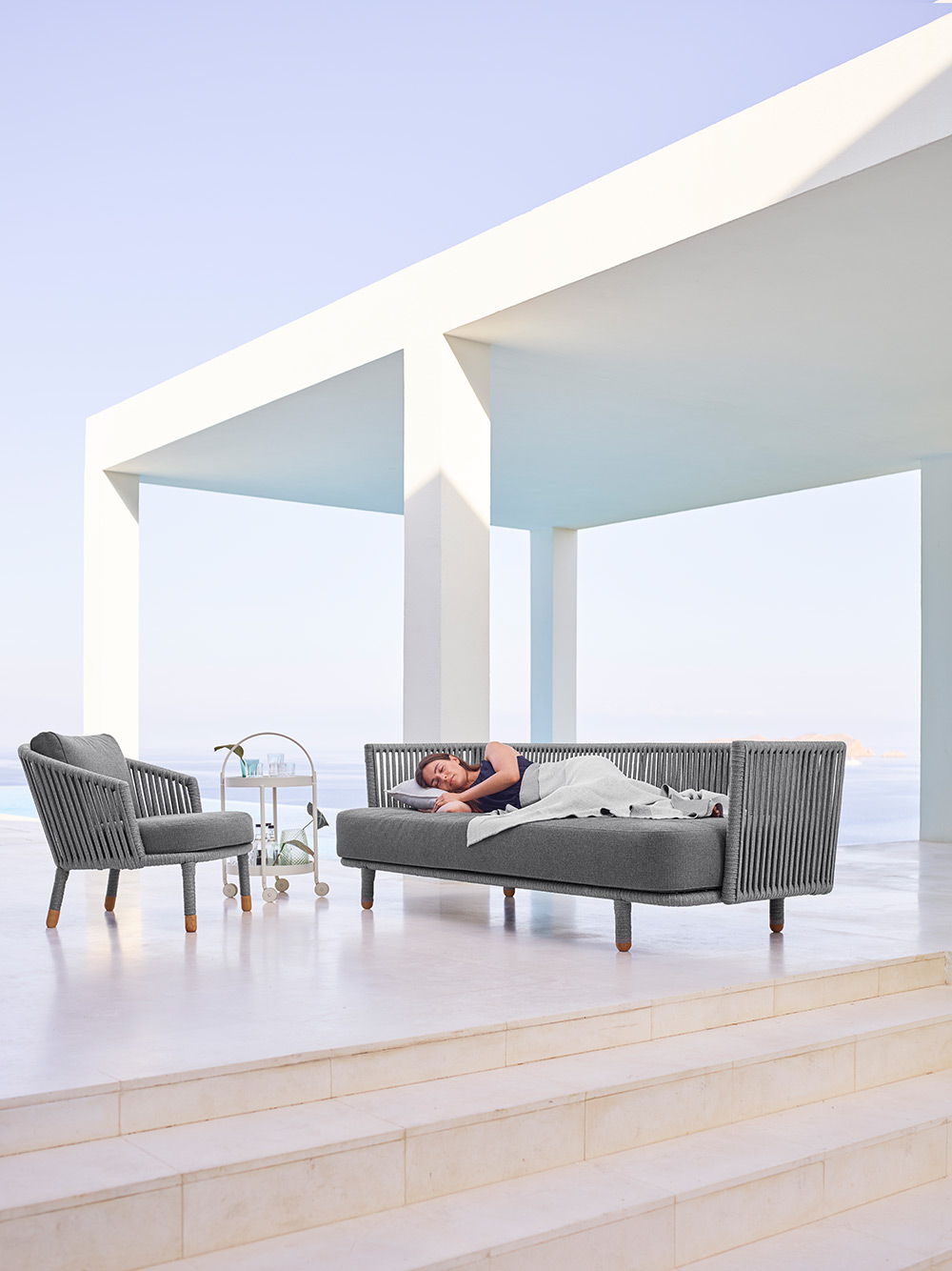 Moments setzt mit seinem eleganten, minimalistischen Design neue Maßstäbe für mehrfach flexibles Design. Sie wird mit Cane-line Soft-Seil und Air Touch Quick-Dry Kissen produziert. Das Cane-line Quick-Dry-System ist eine besondere Technik für Ihren Komfort. Eine Stunde nach dem Regen sind die Kissen wieder trocken.