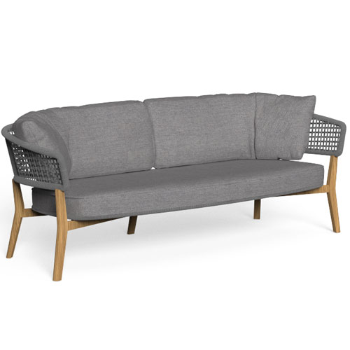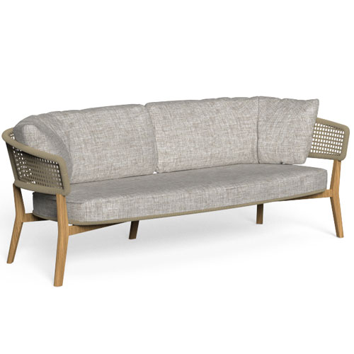 Ein Vorschlag mit elegantem Stil, der sich durch die Farbe des Holzes – natürliches Teakholz – und das geflochtene Seil auszeichnet, das sein natürliches und handwerkliches Aussehen unterstreicht. Eine Kollektion die von den geschwungenen Formen des Mondes inspiriert sind. Eine konische Struktur zur Unterstützung und Umhüllung bequemer und geräumiger Sitze, die die Moon-Lounge zu einem unverzichtbaren Accessoire machen, um angenehme Momente der Entspannung zu genießen und einzigartige und luxuriöse Umgebungen zu schaffen.