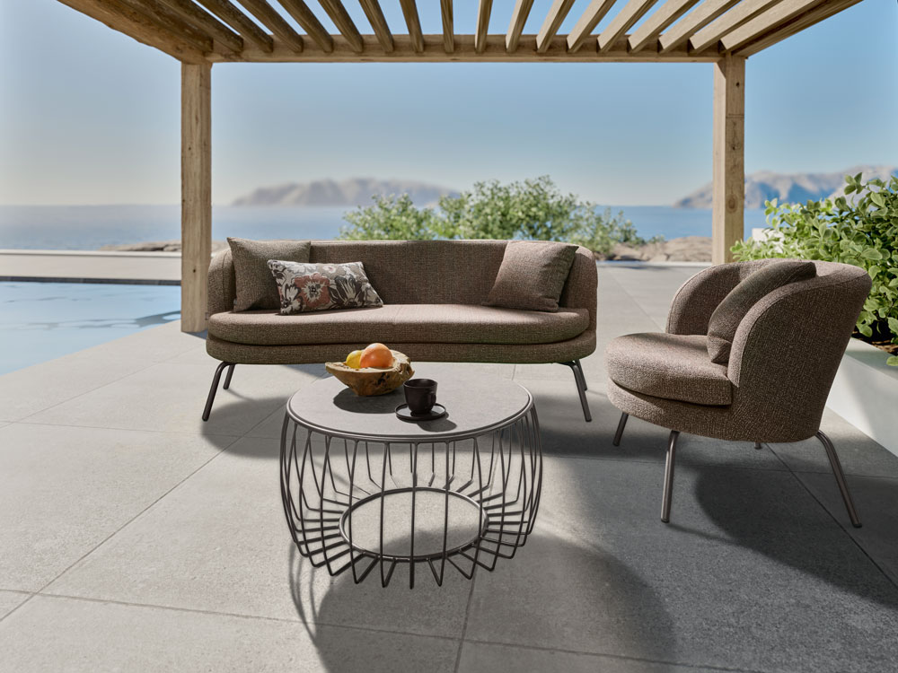 Mit dem geschwungenen Design und den eleganten Materialien entführt Sie die exklusive NOA-Lounge in Ihre pesönliche Finca. Die elegante Sitzfläche wird von schlanken, sand matten Füßen getragen und bietet höchsten Sitzkomfort.