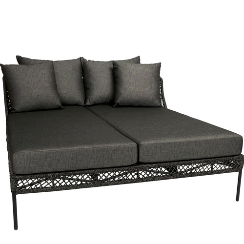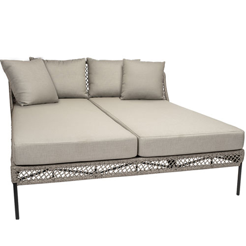 Die rautenförmige, offene Flechtung läßt die Formen der Serie Odea luftig und locker wirken. Das Rope aus Polypropylen ist strapazierfähig und leicht. Die zweifarbige Melierung in der Kordel verleiht ihr ein natürliches Aussehen. In Kombination mit den farblich abgestimmten Liegekissen wirkt Odea besonders Stilvoll.