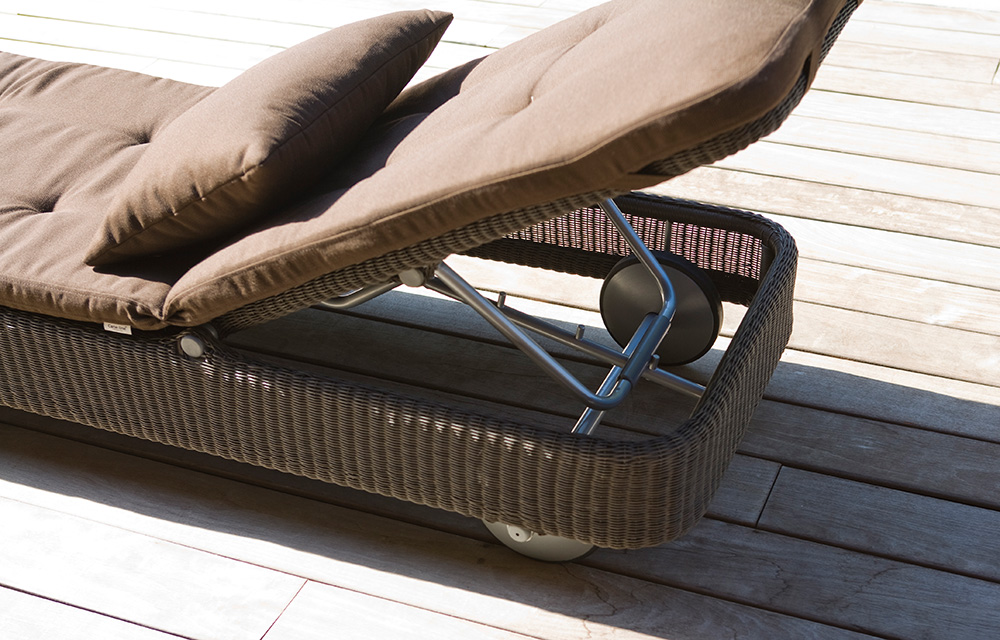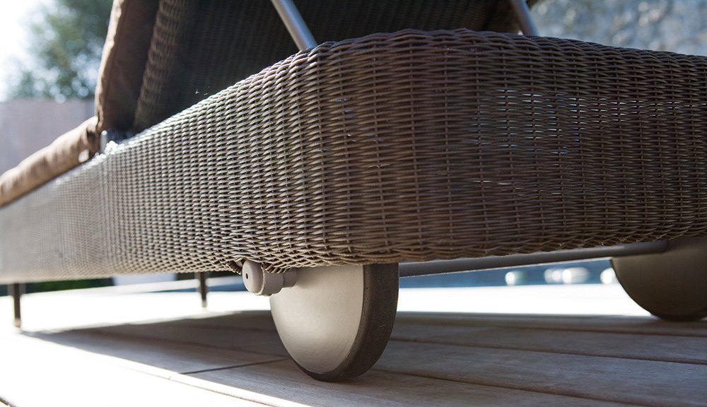 Die bequeme Presley Sonnenliege ist aus der pflegeleichten und witterungsbeständigen Cane-line Faser hergestellt  – dies ist Ihre Garantie für lange Haltbarkeit und Freude am Produkt. Durch die grossen Räder ist die Liege leicht und mobil und kann schnell und einfach in die richtige Position geschoben werden.