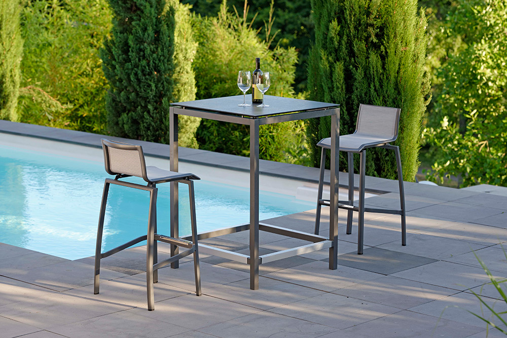 Erweitern Sie Ihren Außenbereich durch einen Stehtisch aus dem Stern Sortiment. Die platzsparende Lösung bietet viele Möglichkeiten zur Kommunikation und zum Empfangen von Gästen.